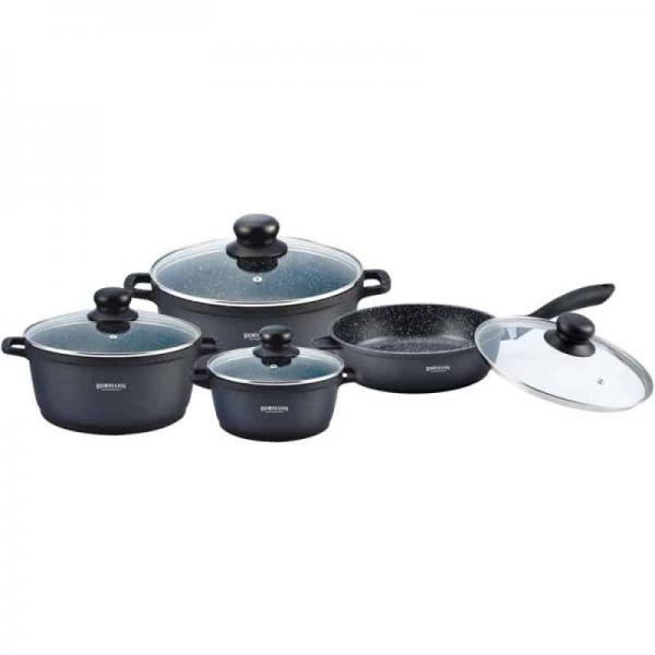 Set oale aluminiu Bohmann BH-6008, 8 piese, capace yena. Set 4 vase cu capace Bohmann, fabricate din aluminiu si acoperite cu un invelis din granit. Aluminiul este rezistent la coroziune, confera durabilitate, iar stratul non-stick, pe langa cunoscuta proprietate antiaderenta, nu interactioneaza chimic cu preparatele si pastreaza gustul, culoarea si valoarea nutritionala a ingredientelor.
