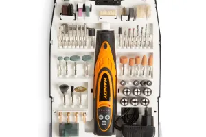 Datorita bateriei incorporate, unealta poate fi utilizata fara cabluri. Folosind-o, vei putea sa gauresti, sa lustruiesti, sa gravezi la orice dimensiuni si in locuri greu accesibile.