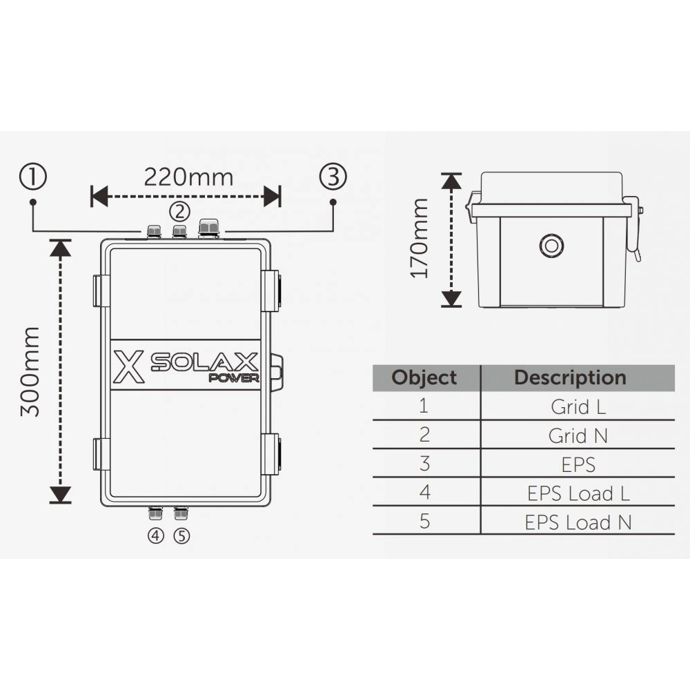 Cutia EPS este un accesoriu Solax pentru a gestiona iesirea EPS a invertoarelor hibride. Datorita cutiei EPS, contactorii sai interni gestioneaza intrarea in retea de urgenta (EPS) a invertoarelor hibride Solax in cazul unei intreruperi de curent in reteaua publica. Mai tarziu, cand reteaua publica revine, acestia sunt responsabili pentru inchiderea in siguranta a iesirii EPS.