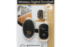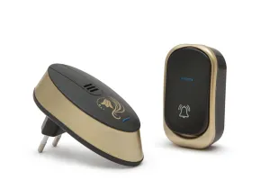 Ofera solutie ideala in orice locatie, unde distanta prea mare sau alte cauze nu fac posibila cablarea unei sonerii clasice.Este suficient sa amplasati butonul soneriei in locatia dorita si aparatul este gata de lucru. Foarte simplu de instalat, se recomanda atat la case de locuit, cat si pt. birouri, depozite, etc.Unitatea de interior se racordeaza la retea si este de asemenea gata de functionare.Design-ul estetic nu modifica aspectul interior al incaperii.Puteti alege intre 32 de melodii si 3 nivele de intensitate sonora – alegand-va varianta cea mai potrivita pt. Dvs.32 melodii diferite la 3 intensitati sonore, la alegereUsor de instalat prin autoadezivAparenta esteticaForma rotunjita cu element decorativ auriuFoarte economicRaza de actiune pana la 100mA nu se expune la actiunea directa a ploiiNr. melodii: 32Nivel sonor: 3 nivele, 60-90 dBAlimentare buton: 1 x 12 V, 23 A (accesoriu)Alimentare unitate de interior: 230 V CAFrecventa de lucru: 433,92 MHz +-1 MHzDimensiune buton: 75 x 40 x 20 mmDimensiune unitate de interior: 95 x 50 x 25 mm