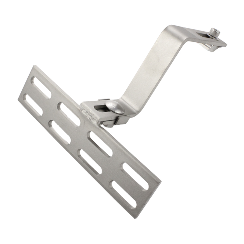 Suport reglabil pentru fixare panou fotovoltaic pe acoperis cu tiglaMaterial: otel inoxidabil SUS304Placa de baza 203 x 50 x 4.8mmInaltimea totala 192-214 mmLungimea totala 156mmGrosime material 4.8 mmDiametru canale pe placa de baza: 37x7.5 mm Numar canale pe placa de baza: 8Setul contine: 3 suruburi autoforante  + surub pentru sina in forma de " Z " Compatibil cu: RAZ440 si RAZ540
