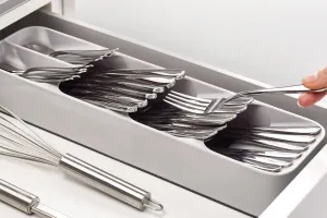 Cele 3 compartimente mari si 2 mai mici permit depozitarea separata a lingurilor, cutitelor, furculitelor, lingurilor de cafea. Datorita designului special, one-to-one, al compartimentelor de depozitare, nu ocupa mult spatiu.