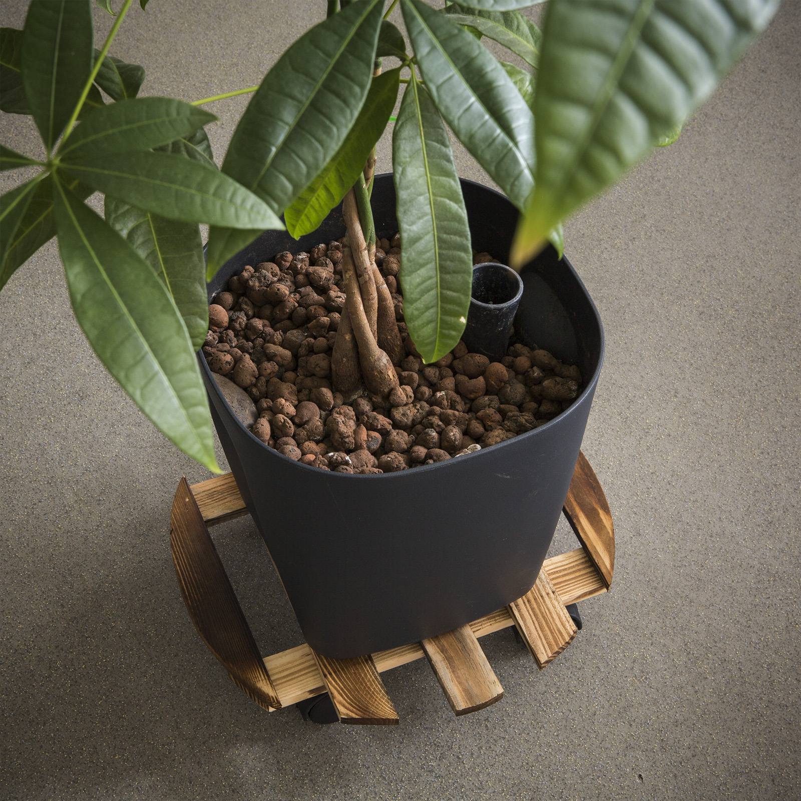 Foarte decorativ in locuinte sau gradini de incinta. Cu ajutorul celor 4 rotile cu autodirijare miscarea plantelor se face fara nici un efort. Protejeaza parchetul de la umezeala plantelor.