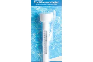 Cu acest termometru de piscina iti poti verifica si controla cu usurinta temperatura piscinei. Lizibilitatea usoara este ajutata de executia cu snur. Se arunca pur si simplu termometrul in apa piscinei si se asteapta stabilirea afisarii valorii temperaturii apei.   Utilizare simpla   Nu este necesara aplecarea pe oglinda apei   Snur lung   Doua unitati de masura °C / °F   Culoare albaDomeniu de masurare: 0 - 50 °CDimensiuni:      185 x 40 mmCuloare:            AlbMaterial:            Material plasticÂ