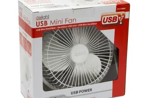 Copia fidela al unui ventilator de masa.Unghi de suflare reglabil (chiar si radial 360°)Constructie stabila, eficienta mareConfortabil, palete metalice in colivie de protectieIntrerupator ON/OFF pe partea posterioara5V 0,25W (functioneaza de la PC sau orice sursa USB)Diametru: 18 cmInaltime: 20 cmLungime cablu: 110 cmÂ