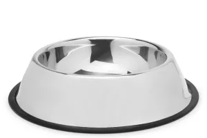 Bol clasic pentru catei, executat din otel inoxidabil Datorita materialul din care este executat, este potrivit atat pentru hrana, cat si pentru apa. Usor de curatit. Inelul de cauciuc aplicat pe fundul vasului previne alunecarea bolului in timp utilizarii. Disponibil in trei dimensiuni, ca atare veti gasi cu siguranta dimensiunea potrivita animalului dvs. de companie.